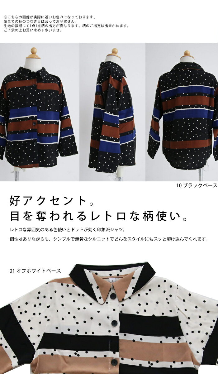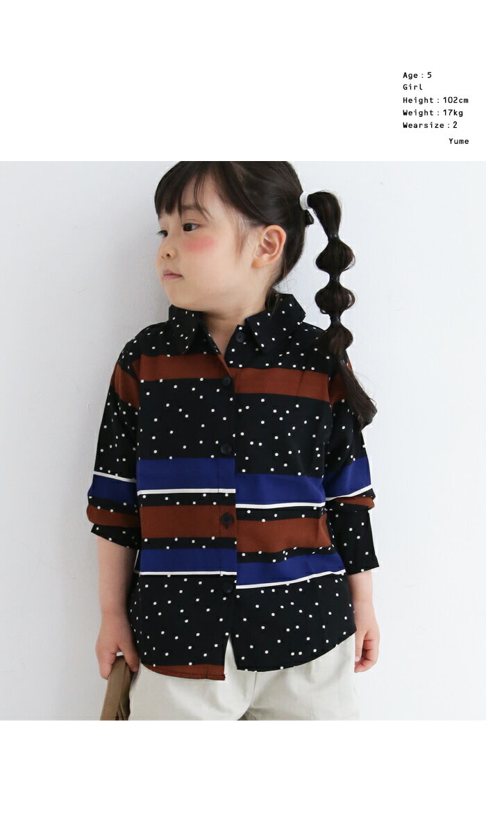 ストライプ×ドットシャツ サイズ 2、3、4 素材 ポリエステル100% 生地の伸縮性 伸縮性なし 生地の透け感 (ブラックベース)光に当てると 若干透けます (オフホワイトベース)透けます 配送方法 ◎メール便配送可 ※サイズ表記について サイズ(平置き・およそ) 総丈 肩幅 袖丈 身幅 2 46 28.5 38 38 3 49 28.5 40 41.5 4 54 29.5 44.5 45.5 サンプルサイズ モデル着用サイズは画像をご確認くださいませ。