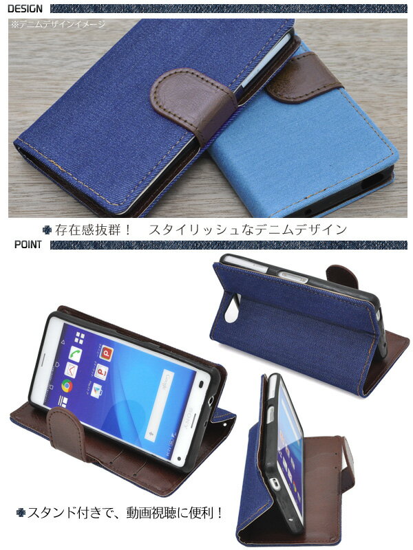 メール便送料無料【Xperia A4 SO-04G用レデニムデザインスタンドケースポーチ】ライトブルー/ネイビー シンプルで使いやすいジーンズデザイン 背面スタンド・カードポケット付き手帳型カバー(エクスペリアエースフォー docomo ドコモ スマホカバー)