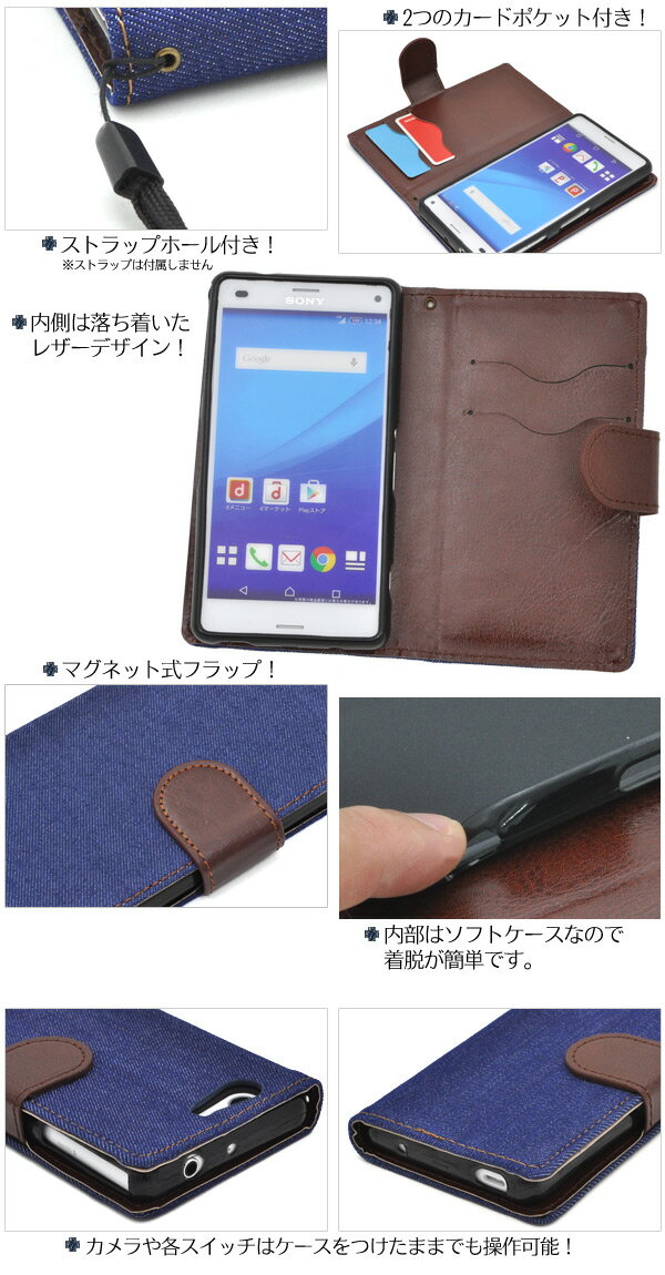 製品仕様 対応機種 Xperia A4 SO-04G デザイン 2種類 素材 合皮(PUレザー)/PC/布 注意 ※ケースをつけたまま撮影できますが、フラッシュ撮影時にケースの色が移り込むことがあります。
